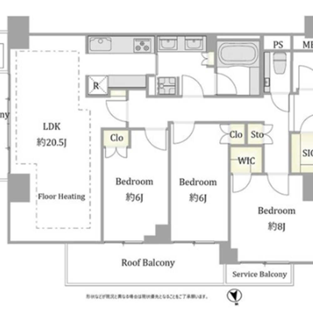北東角部屋のため、2面採光で明るく風通しの良い住空間を実現。2面バルコニーに加え、プライベートなルーフバルコニー付きで、都心の景色を楽しみながら過ごせます。