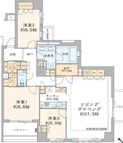3LDK | 1バスルーム | マンション